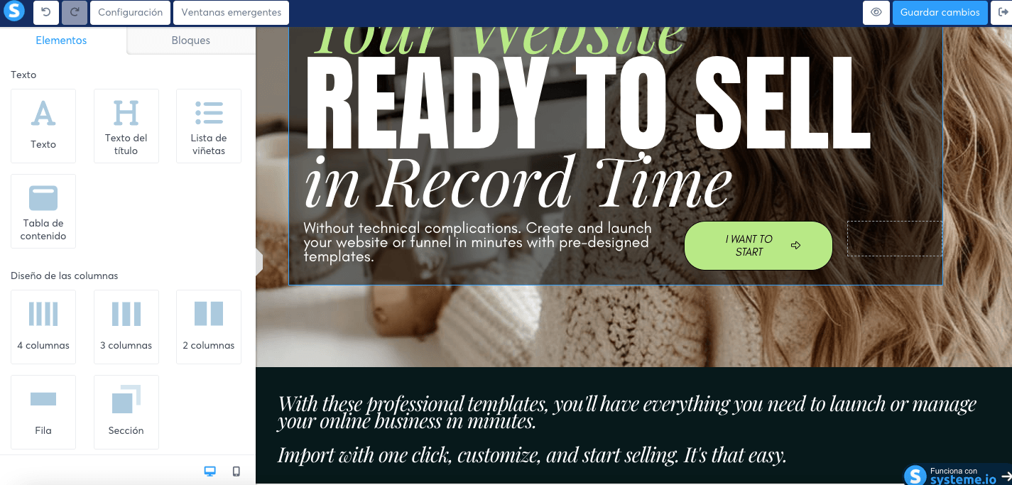 Literally, just one click: you receive a link, open it, and your template is ready in your Systeme.io account to start customizing.